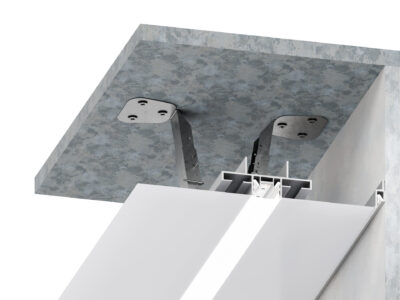 AL 27 + AL 27 Lock is multifunctional profile used for backlit ceilings, backlit walls, acoustic solutions and lamps. This profile was developed to create illuminated design without any shadows. Design elements created with this profile can be installed or mounted directly to the ceiling, hanged